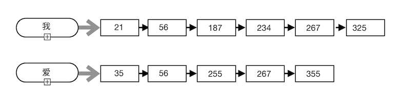 譬如搜索”爱“,索引会找到,包含“爱”的文档有35,56,255,267,355,而不用在整个数据中去搜索了,如果我们搜索即有“爱”,又有“我”,那么取两个倒排表的交集即可(结果56,267)。