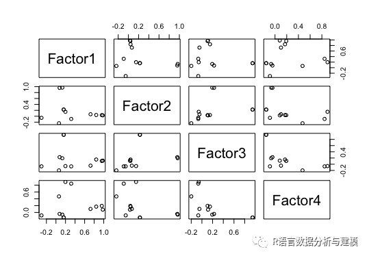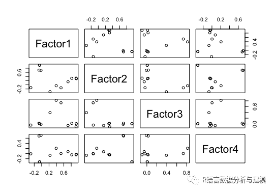 一般采用KMO检验和Bartlett's球体检验进行验证。然后可以通过factanal()函数进行计算。根据累积方差贡献率确定因子的个数:如果前m个因子包含数据信息总量(即累积方差贡献率不低于80%)时,可取m个因子来反映原评价指标。然后,获得因子载荷并作出解释。根据m个因子无法确定或者实际意义不明显的时候,可以因子进行旋转来获得明显的实际意义。