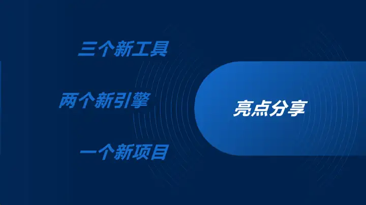 那其中的亮点可以总结成:三个新的工具,两个新的引擎和一个新的项目。