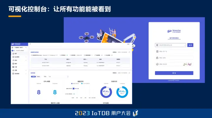 那在所有的计算机软件里面,我们说操作系统,它可以说是最底层的,最不被用户所接触到。但是操作系统现在每一个人都可以去用起来,这就得益于它的很良好的用户交互界面。那我们也是基于同样的思想,IoTDB 在数据库层面也提供了一个可视化的控制台,这样的话和 IoTDB 的交互就不再会像以前一样,我们去通过大黑框或者写代码的方式了。我们的目标是让所有 IoTDB 的功能能够被看到。