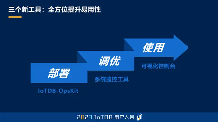 三个新的工具这里,我们分别在数据库的部署、调优和使用阶段分别推出了对应的工具,从而全方位地提升 IoTDB 的易用性。