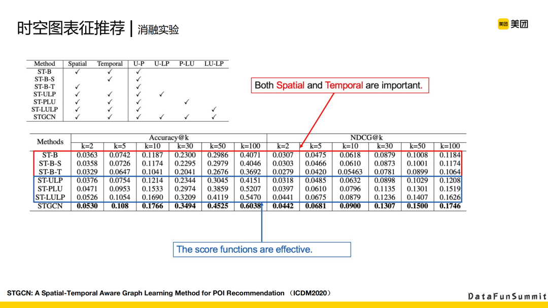 上图可以看到消融实验的结果。篇幅有限,在此不展开说。但可以看到,加上时间因素和空间因素后,会对整个模型起到一定的提升。