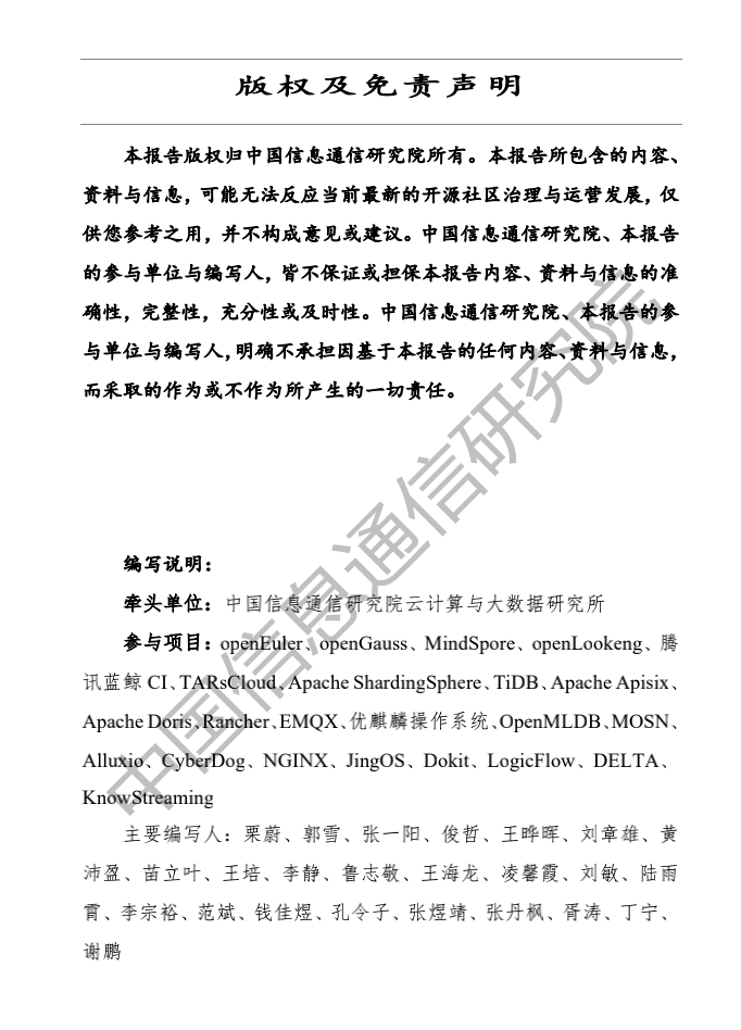 2022年1月,由中国信息通信研究院云计算与大数据研究所牵头,联合openEuler、openGauss、MindSpore、openLookeng、腾讯蓝鲸CI、TARsCloud、Apache ShardingSphere、TiDB、Apache Apisix、Apache Doris、Rancher、EMQX、优麒麟操作系统、OpenMLDB、MOSN、Alluxio、CyberDog、NGINX、JingOS、Dokit、LogicFlow、DELTA、KnowStreaming等23个开源项目与社区共同编写的《可信开源社区共同体项目社区案例集》第一期正式发布。本案例集收集了开源项目社区的社区治理及运营案例材料,旨在分享我国开源项目与社区优秀实践。