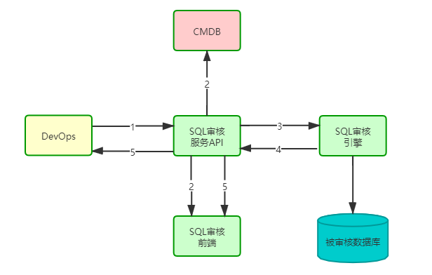4) SQL审核引擎接受到请求后,连接被审核数据库,按预定规则进行匹配,审核后的数据异步回传给SQL审核服务API。