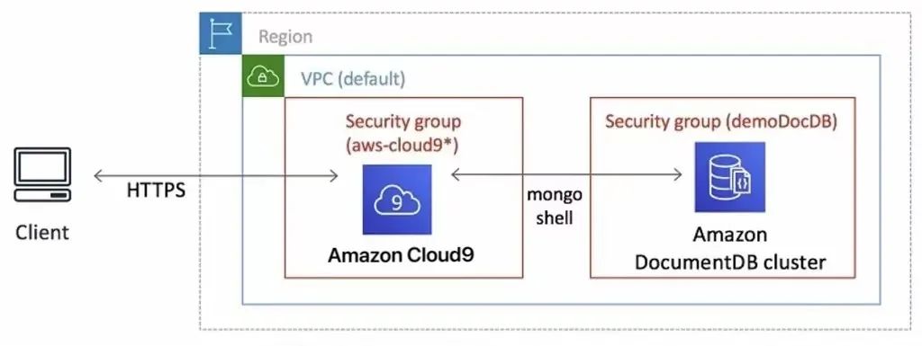 第一步是在您的默认Amazon Virtual Private Cloud(Amazon VPC)当中创建一个Amazon Cloud9环境外加一套Amazon DocumentDB集群。关于创建默认VPC的操作说明,请参阅Amazon VPC入门指南。本文将演示如何使用mongo shell从Amazon Cloud9环境接入Amazon DocumentDB集群并运行事务。在创建Amazon资源时,我们建议您遵循Amazon身份与访问管理(IAM)最佳实践。