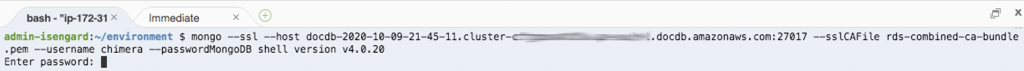 4.在输入密码时,您会看到rs0:PRIMARY> 提示,代表您已成功接入Amazon DocumentDB集群。