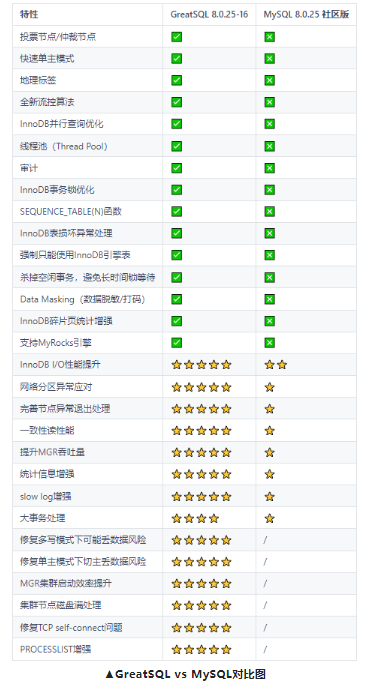 GreatSQL社区孵化了开源数据库项目GreatSQL,其专注于提升MGR可靠性及性能,支持InnoDB并行查询等特性,是适用于金融级应用的国内自主MySQL版本,可作为MySQL或Percona Server的可选替换,用于线上生产环境,且完全免费并兼容MySQL或Percona Server。通过对比GreatSQL8.0.25-16新版本与MySQL 8.0.25社区版本,发现优化升级后的GreatSQL在性能、稳定性方面都得到了大幅提升。
