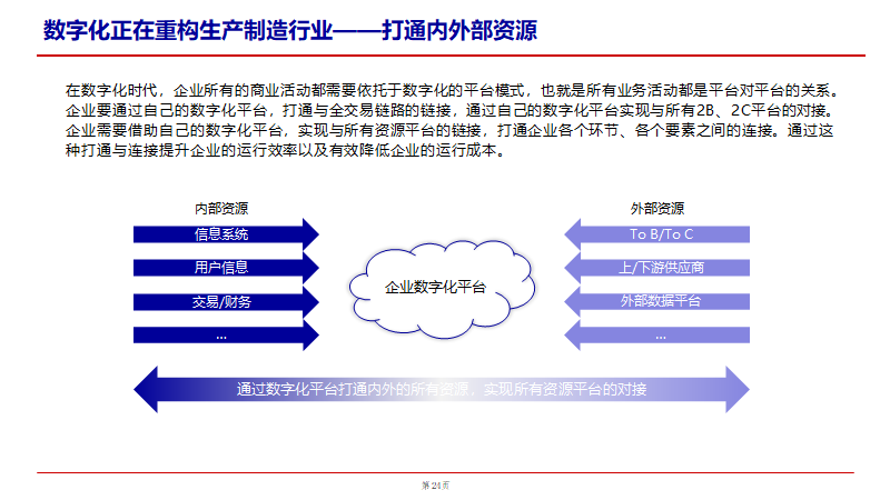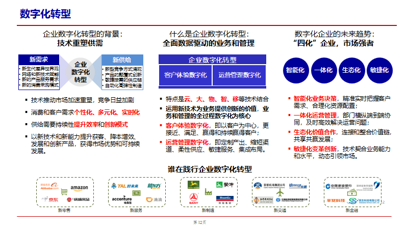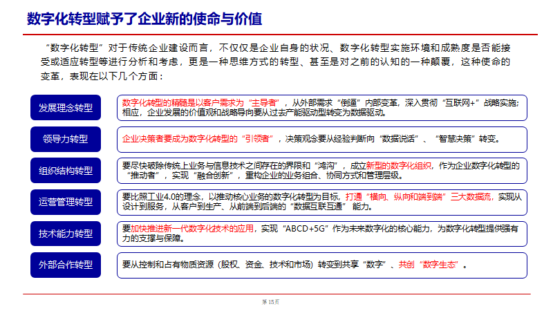 前言 “数字化转型”对于传统企业建设而言,不仅仅是企业自身的状况、数字化转型实施环境和成熟度是否能接受或适应转型等进行分析和考虑,更是一种思维方式的转型、甚至是对之前的认知的一种颠覆。