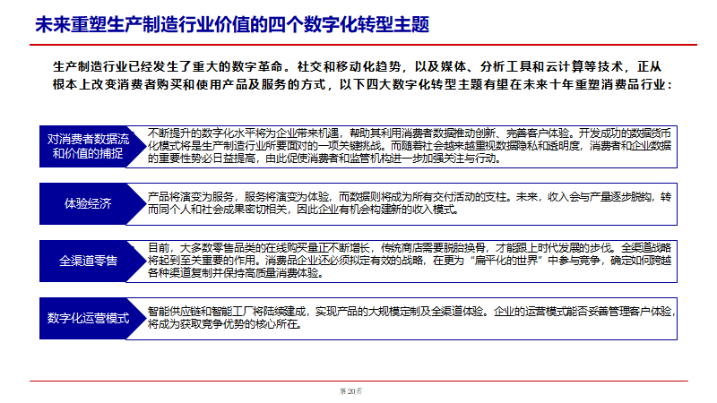 分享一份PPT,或许能为传统企业数字化转型提供一种可靠的方法论。如需获取完整PPT,请在公众号后台回复“十四五”,即可获得《从十四五规划看企业数字化转型》99页完整版。