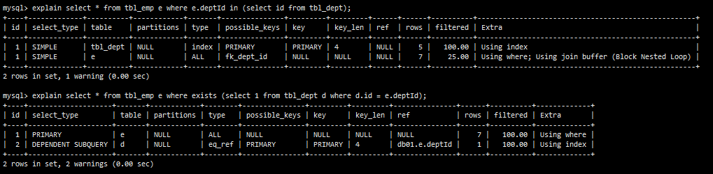 2.EXISTS子查询的实际执行过程可能经过了优化而不是我们理解上的逐条对比,如果担心效率问题,可以进行实际校验以确定是否有效率问题。