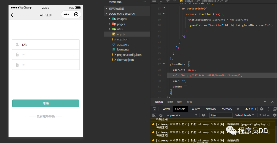进行相关的小程序界面的内容开始注册和登录信息基本上是一致的在进行相关的登录和注册的操作的时候,内容基本上是一致的
