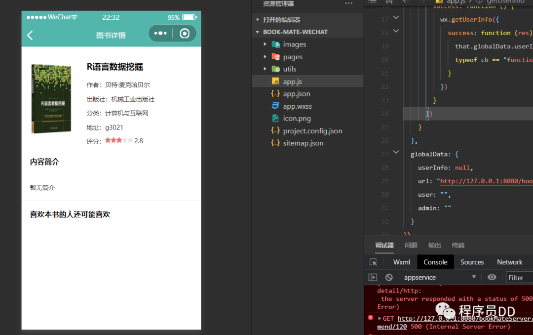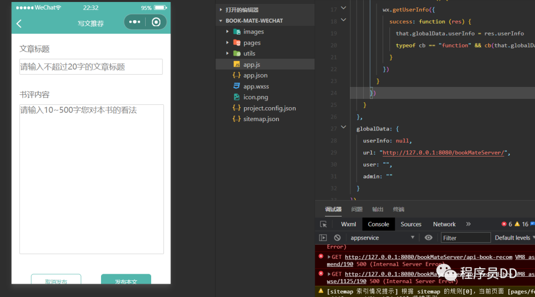 主要对小程序内的图书信息进行相关的写文推荐的操作