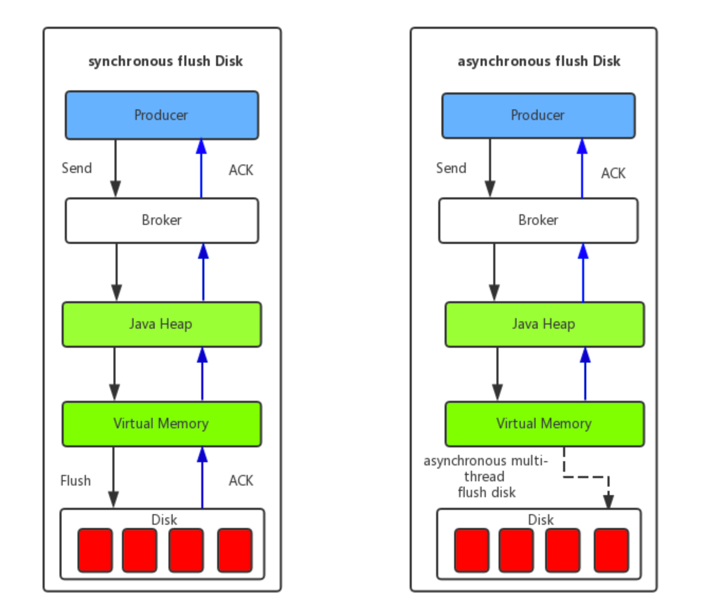 综上,异步刷盘两种情况可以用下图来说明: