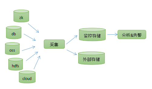 数据采集当前包含有多个数据源,如zk、mysql、hdfs、oss server等。数据目前为1min采集粒度,采集回来之后写入存储。数据存储鉴于减少维护成本和取得收益的均衡性,仍采用MYSQL或TDSQL。目前数据采集的主要问题为: