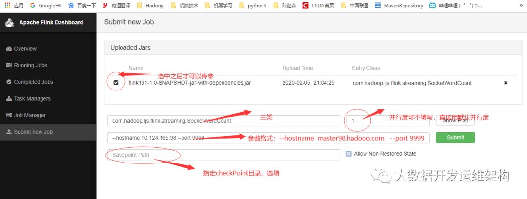 上传后,选中jar前面的复选框,可直接填写相关参数: