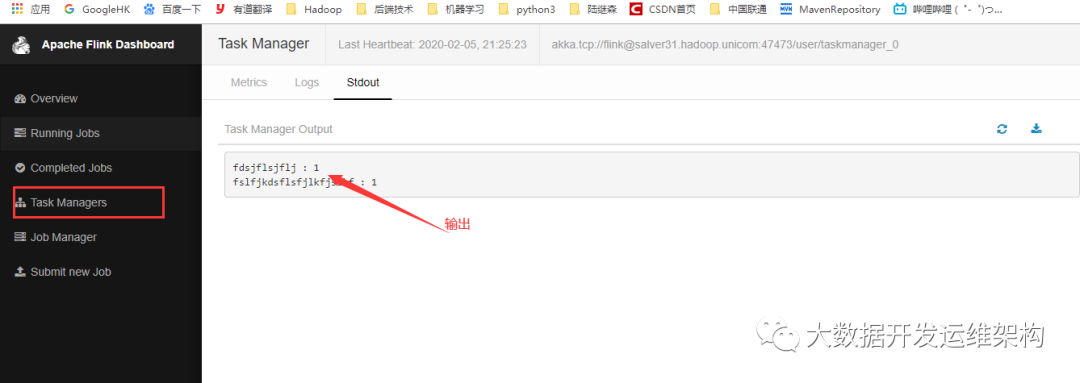 界面也可查看日志和输出: