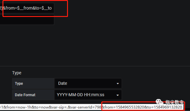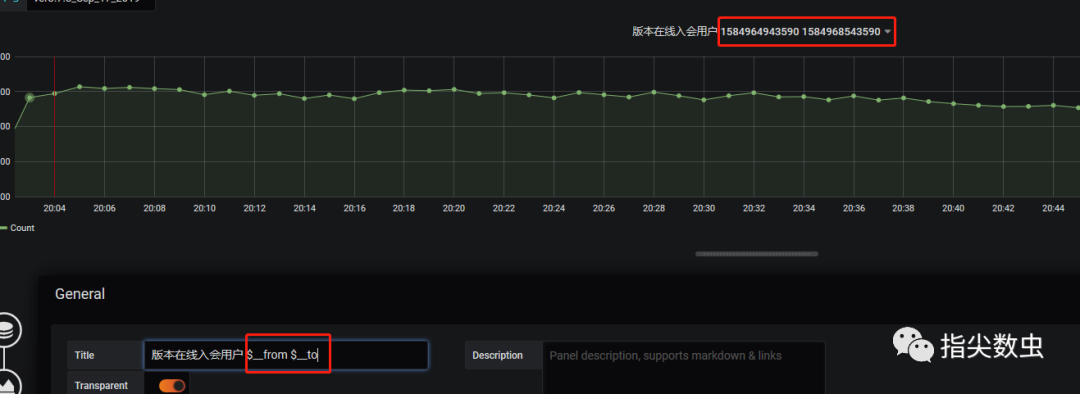 &__from , &__to 用于获取到当前Dashboard的时间范围。
