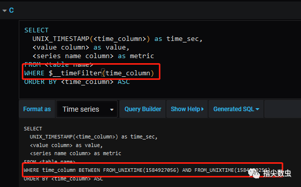 timeFilter实现时间表达式的生成,例如我们在直接使用SQL的时候就可以看到该变量与生成的结果。