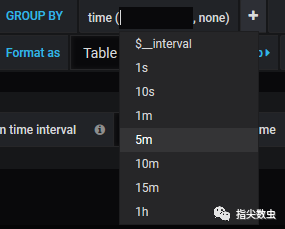 通过较大的时间间隔来进行分组能够提高查询效率,如果点数多于图表上的话图表上也无法展示。例如,7天的时候我们可能希望能够按照小时进行分组。那么我们就可以使用 「&__interval」与**&__interval_ms**变量。