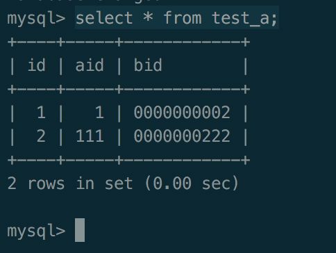 可以看到,查询出的bid这一列的值,不足10个显示宽度的在左侧用0做了补全。 aid这一列虽然显示宽度是1,但是仍然可以存储超过1个长度的值,并且显示也没有问题。
