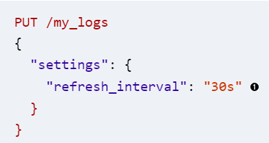 我们把这个写到系统cache的操作称为refresh,默认来说,这个refresh的频率是每秒一次。这就是为什么我们说可以做到近乎实时的查询了。当然并不是所有的场景都需要这么频繁的更新,你可以通过下面命令来修改更新的频率,设置可以设为-1来关闭这个更新。