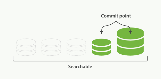 这个想法在Lucene中是如何实现的呢?我们可以认为inverted index被分成了各个segment,然后有一个commit point来表示哪些segment当前是可以被查询的。如下图所示: