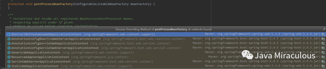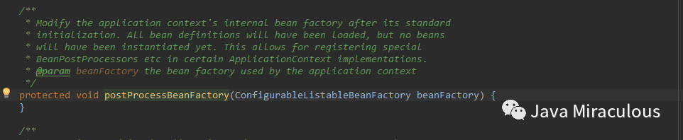 4、postProcessBeanFactory(beanFactory):允许在上下文子类中对 bean 工厂进行后处理