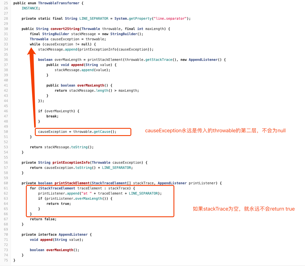 这个bug,对于stackTrace不为空的trace时,只能记录两层exception,对于stackTrace为空的trace直接OOM,也就是说sentinel因为限流降级抛出的异常stackTrace为空。这里给出sentinel的BlockException部分代码,它重写了fillInStackTrace方法,直接返回this。