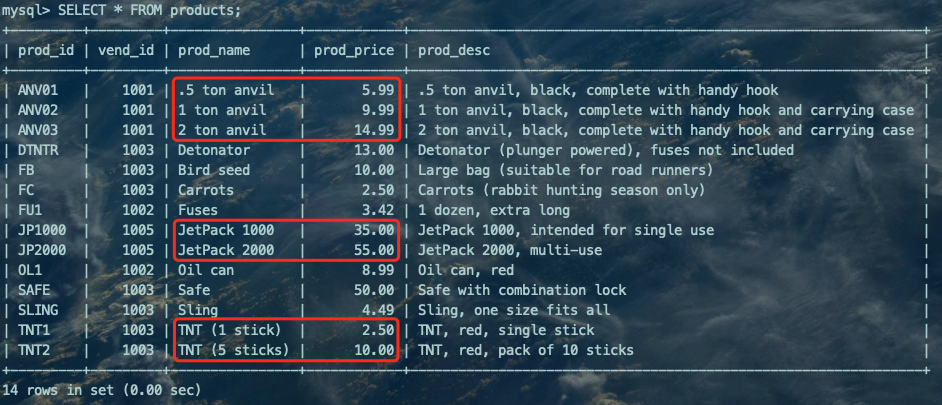 先来看下products表中的数据: