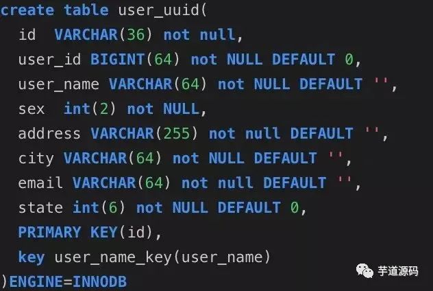 分别是user_auto_key,user_uuid,user_random_key,分别表示自动增长的主键,uuid作为主键,随机key作为主键,其它我们完全保持不变.