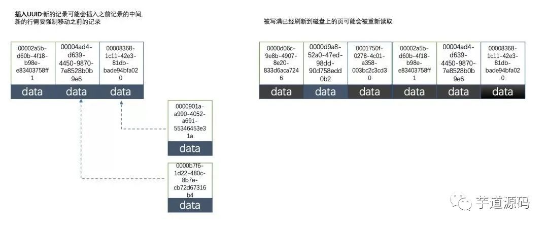 因为uuid相对顺序的自增id来说是毫无规律可言的,新行的值不一定要比之前的主键的值要大,所以innodb无法做到总是把新行插入到索引的最后,而是需要为新行寻找新的合适的位置从而来分配新的空间。