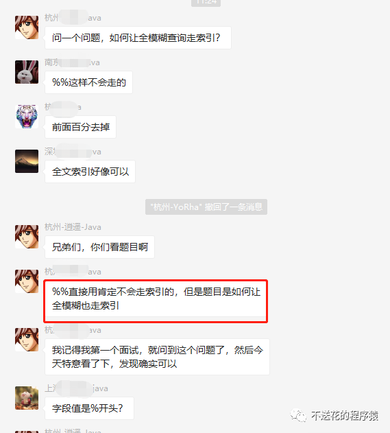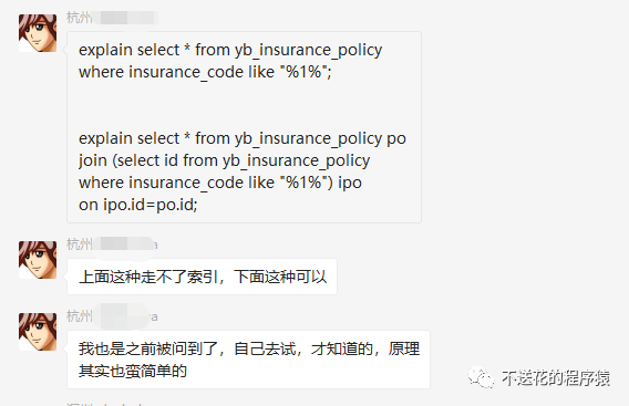 之后,这位同学确实也发了一个全模糊查询走索引的例子:
