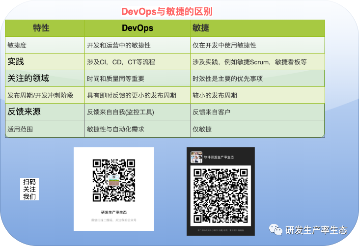 敏捷的基本原则是为开发带来敏捷性。但是,DevOps的基本原则为开发和运维都带来敏捷性。DevOps不能替代敏捷,虽然敏捷是瀑布模型和其他Scrum实践的自然替代品,但DevOps不是替代品,它是敏捷的直接继承者。
