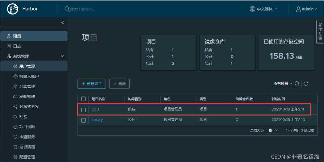 基于角色的访问控制 :用户与Docker镜像仓库通过“项目”进行组织管理,一个用户可以对多个镜像仓库在同一命名空间(project)里有不同的权限。