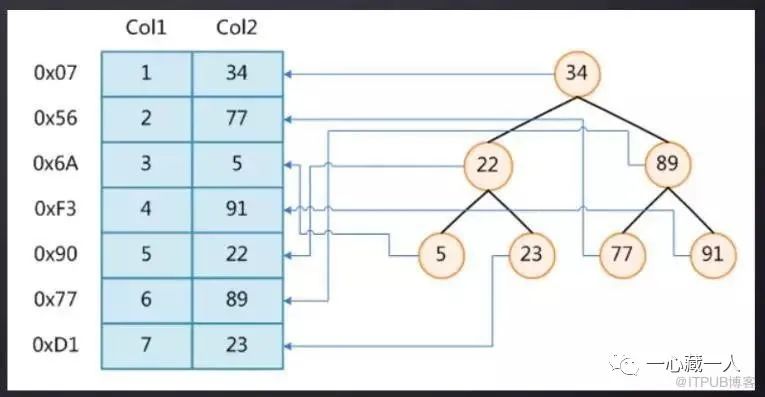 不加索引的情况下,SQL:select * from t where t.col2=89 ,需要从表的第一行一行行遍历比对col2的值是否等于89,这样需要比对6次才能查到。这只是只有几行记录的表,那如果是百万级千万级的表呢?是不是就比较的次数就更多了,那还不得慢死。