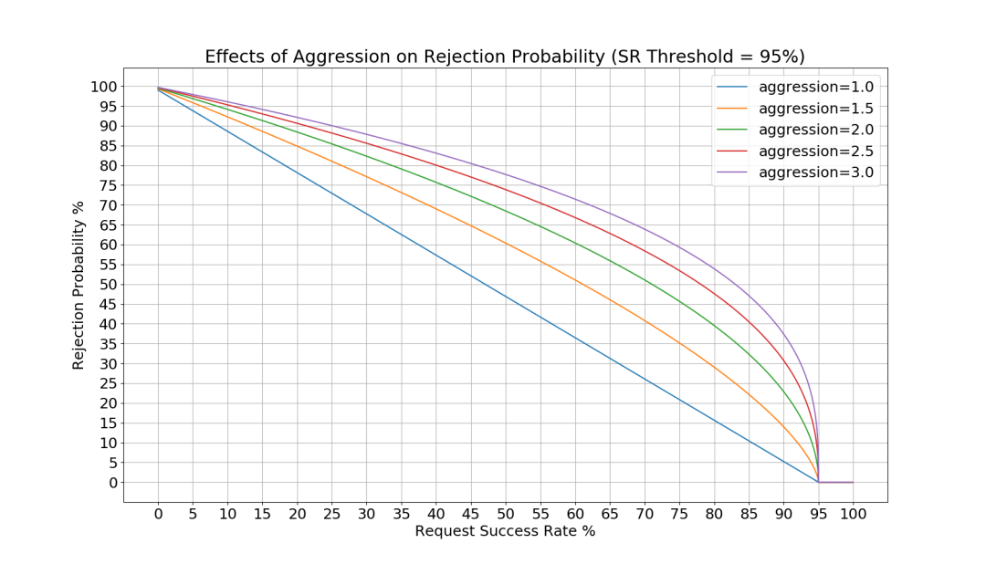 admission control filter是envoy一个http类型的过滤器,作用是根据前面请求的成功率,概率性的拒绝请求连接。他是基于客户端的.被拒绝的概率的计算公式如下:
