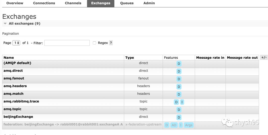默认的交换器(每个vhost下都会默认创建一个名为""的交换器)和内部交换器,不能对其使用Federation的功能。