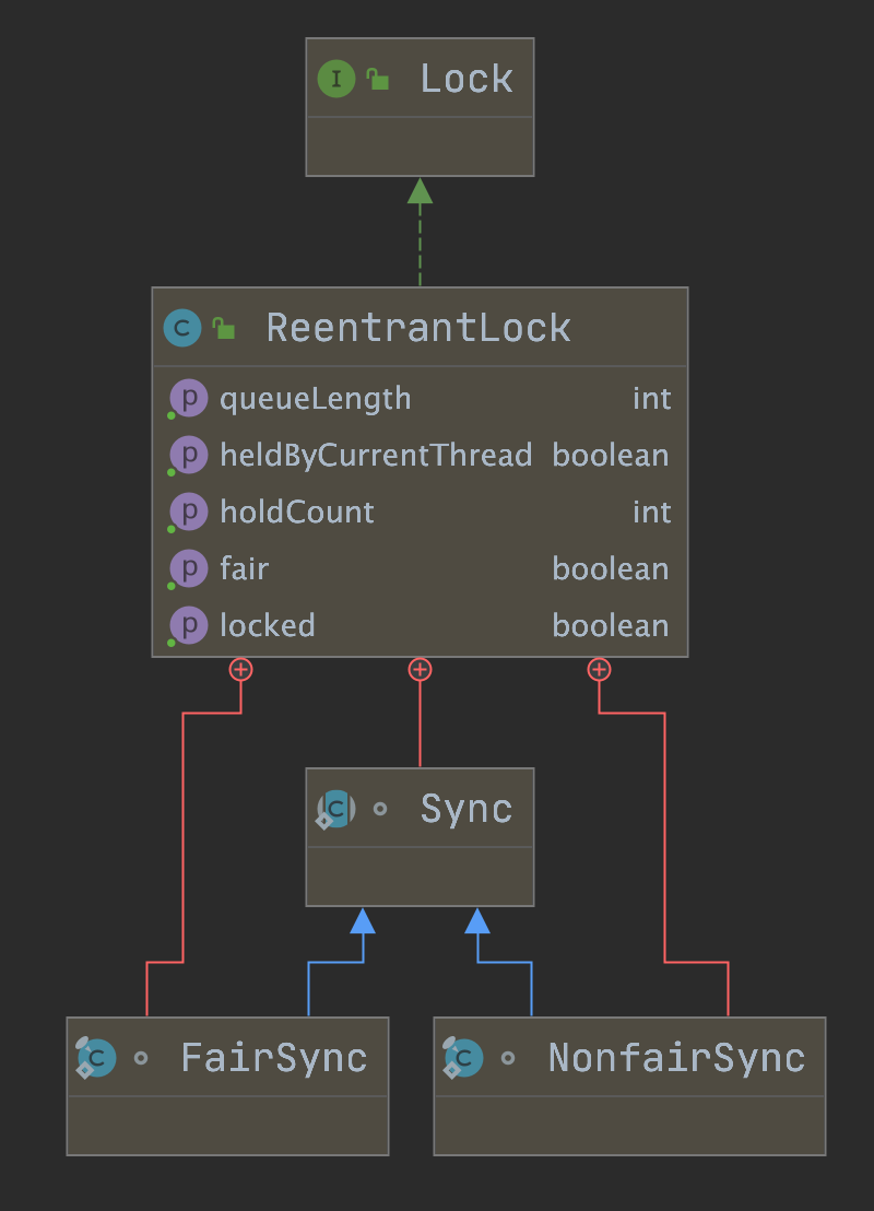 我们通常会使用 ReentrantLock 来定义其实例,它们之间的关联如下图所示: