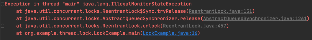 从上述结果可以看出,执行第 2 个 unlock 时,程序报错并终止执行了,导致异常之后的代码都未正常执行。