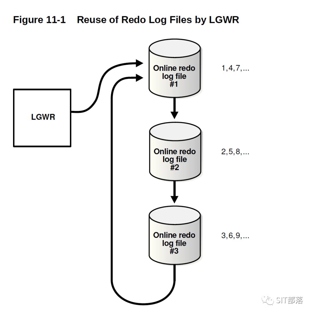 在线日志按照组来管理,每一个组里面一般有多个日志文件,同一日志组里面的多个文件之间是镜像的关系,也就是说同一组里面的不同日志文件的内容是一模一样的,这也是为了防止单个日志文件的损坏。日志组之间按照循环方式来工作,所以ORACLE中,至少应该有两个日志组,当一个在线日志组1被写满的时候,就会发生日志切换,这时在线日志组2成为当前使用的日志,当联机重做日志组2写满的时候,又会发生日志切换,去写联机重做日志组1,就这样反复进行。当然,你也可以设置多个在线日志组,比如你有在线日志组1,2,3,4的话,切换的顺序就是:1写满了,切换到2,2写满了切换到3,3写满了切换到4,4写满了切换到1,这样重复重复再重复。