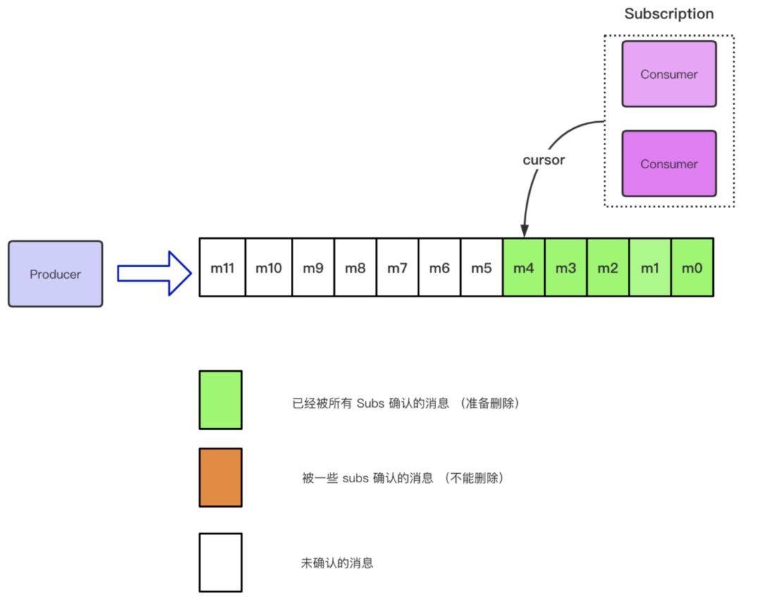 当某条消息被所有订阅者都 Ack 之后,这条消息进入【可以被删除】的状态