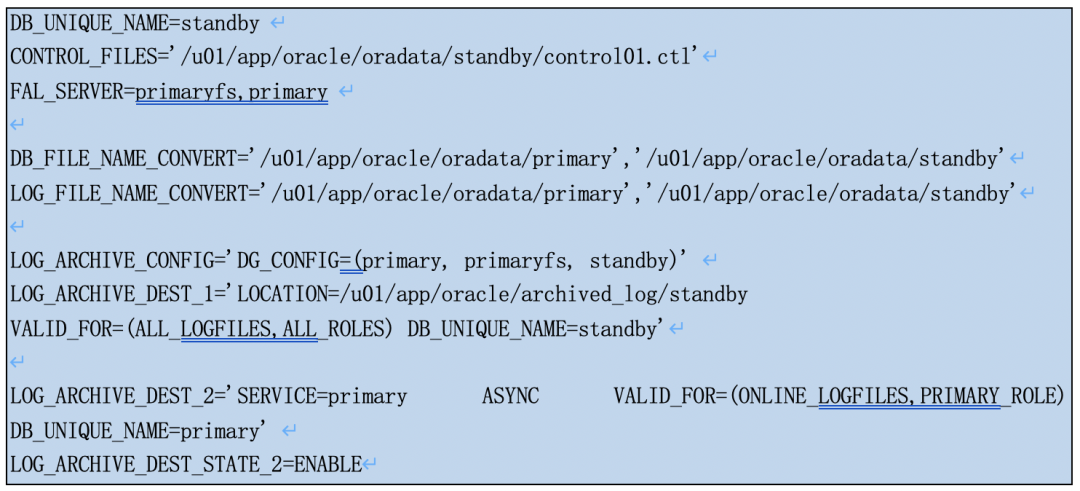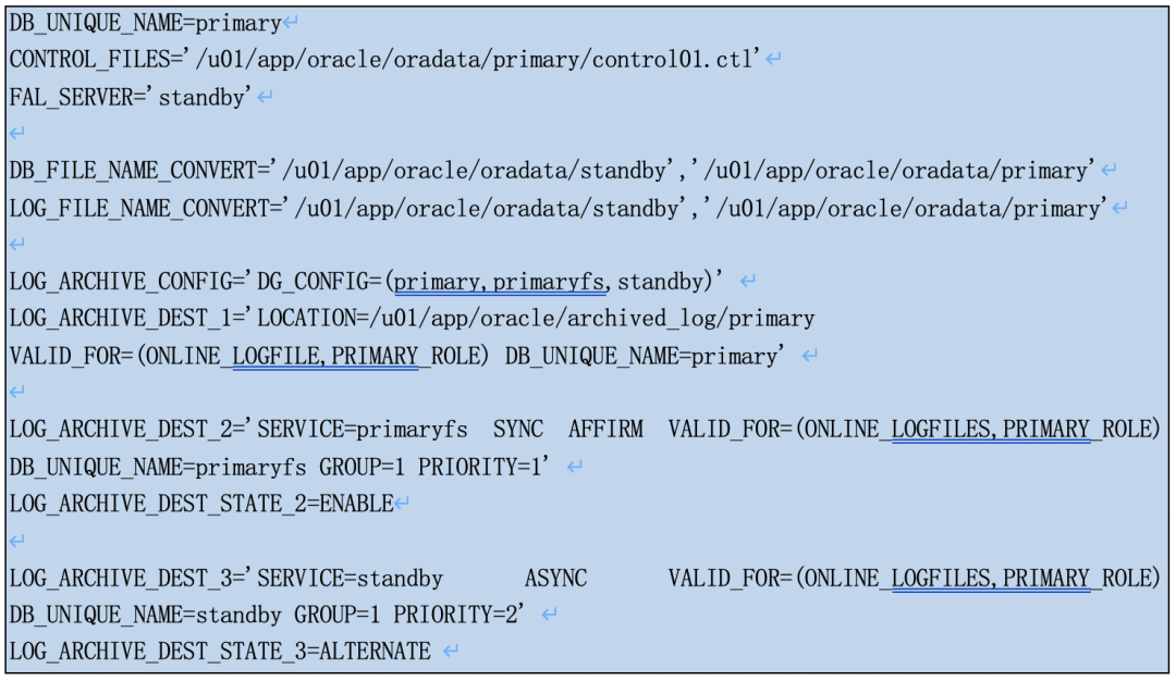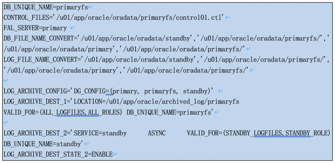 DB_UNIQUE_NAME | primary | primaryfs | standby |
