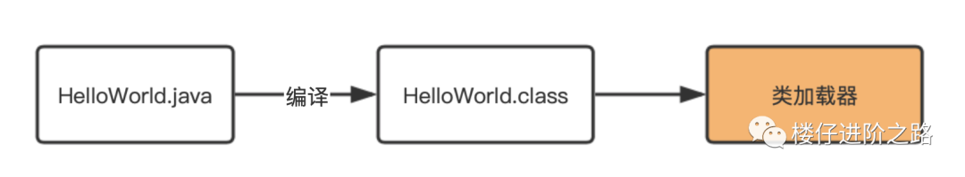 如果 JVM 想要执行这个 .class 文件,我们需要将其装进一个类加载器 中,它就像一个搬运工一样,会把所有的 .class 文件全部搬进JVM里面来。