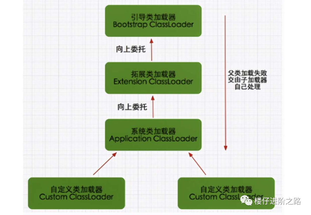 BootStrap ClassLoader:rt.jar Extention ClassLoader: 加载扩展的jar包 App ClassLoader:指定的classpath下面的jar包 Custom ClassLoader:自定义的类加载器