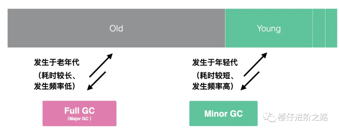 Minor GC/Young GC:针对新生代的垃圾收集; Major GC/Old GC:针对老年代的垃圾收集。 Full GC:针对整个Java堆以及方法区的垃圾收集。