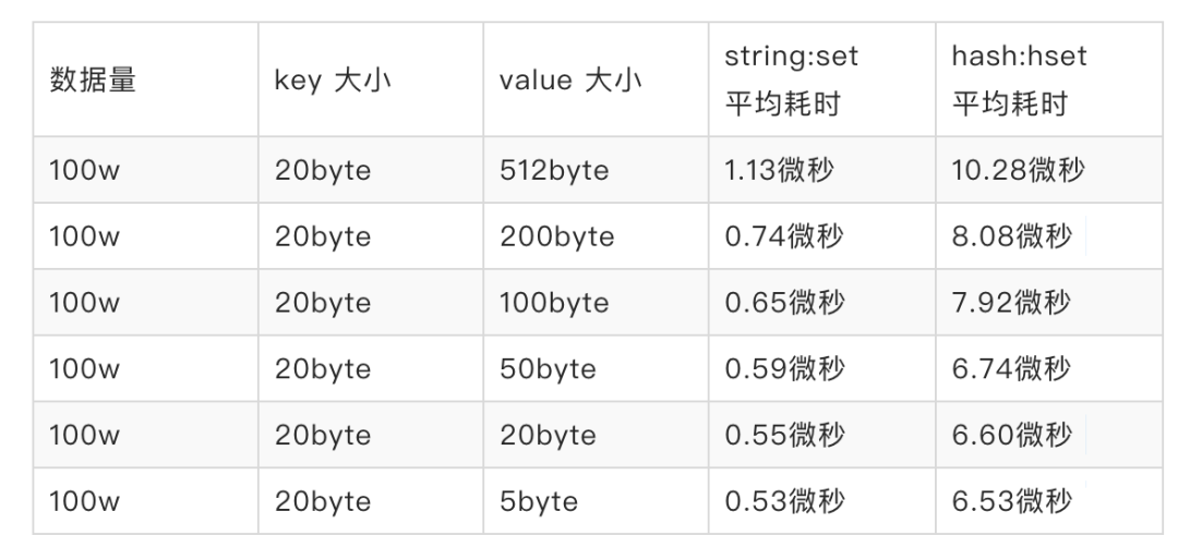 键值对的长度是和性能成反比的,比如我们来做一组写入数据的性能测试,执行结果如下: