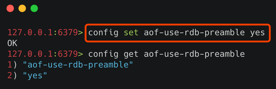 使用命令 config set aof-use-rdb-preamble yes