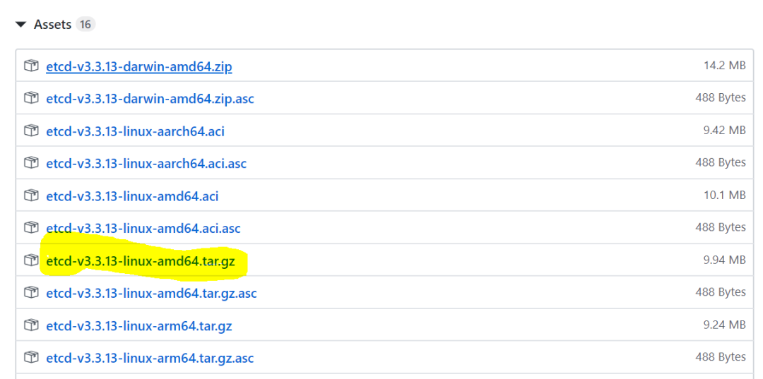 从github官网(https://github.com/coreos/etcd/releases)下载etcd二进制文件