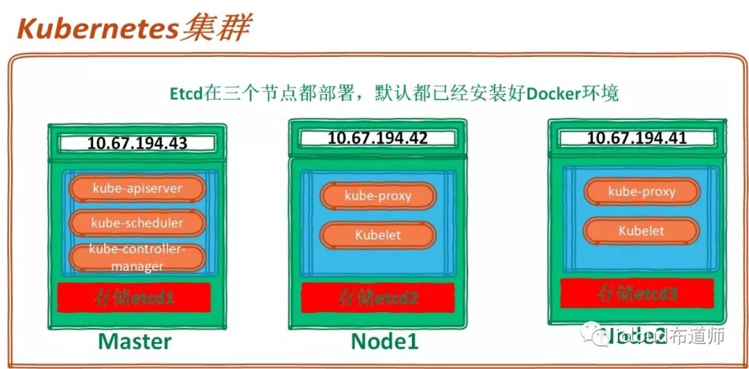 在工作Node上需要部署docker、kubelet、和kube-proxy服务进程