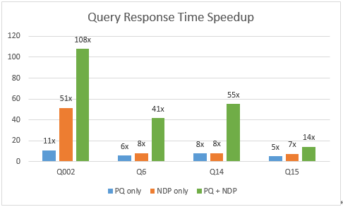 从下面的测试结果可以看出, NDP+PQ将Q002加速了100多倍。